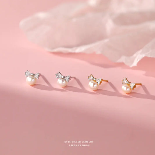 Pearl Bow Sweet Stud Earrings