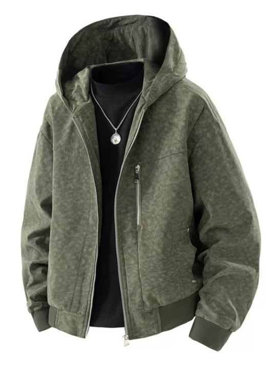 Men's Plus Size Zip Up Hooded Bomber Jacket