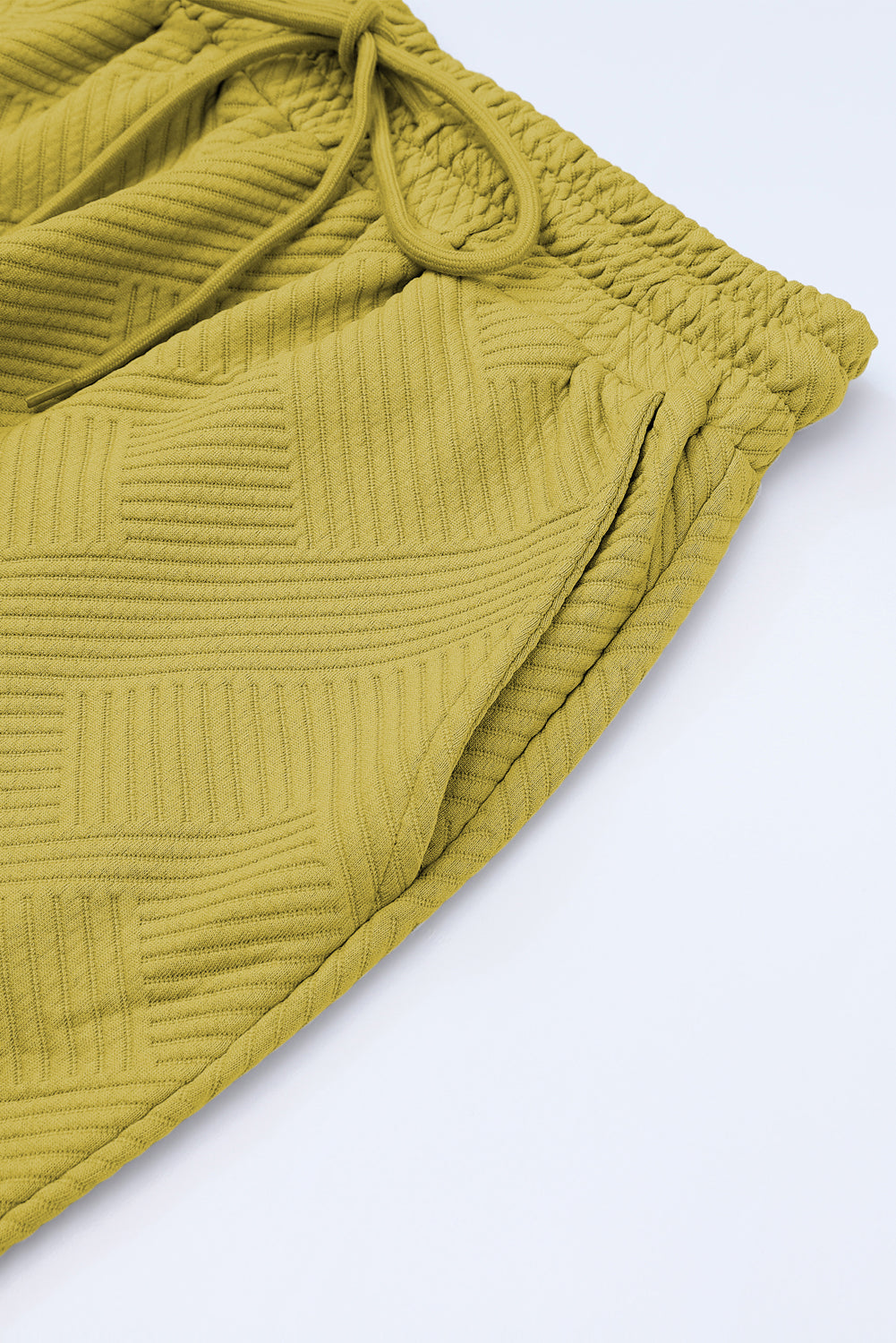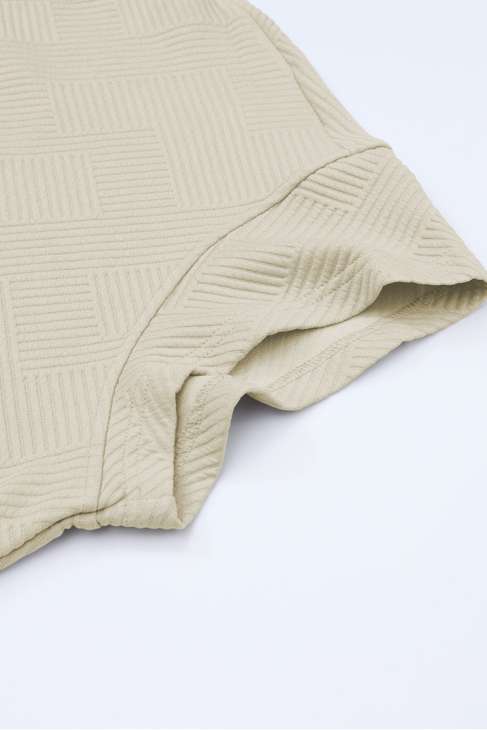 Gray Textured Loose Fit T Shirt and Drawstring Pants Set