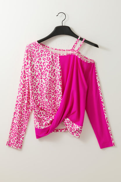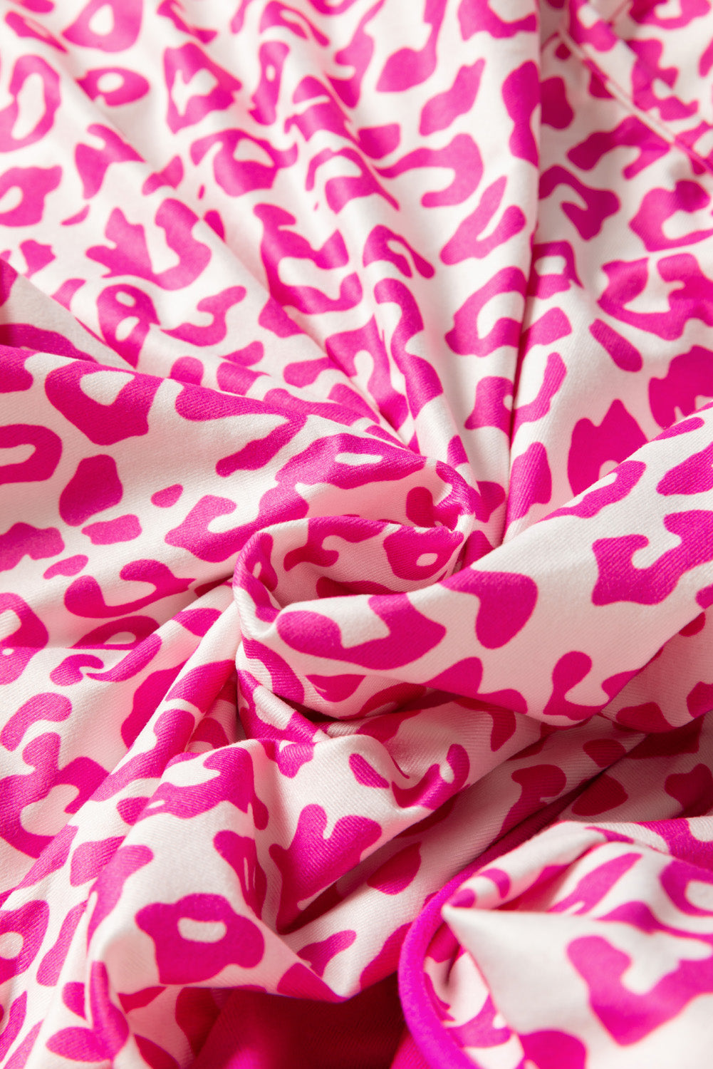 Multicolor Plus Size Leopard Colorblock Long Sleeve T-Shirt Dress